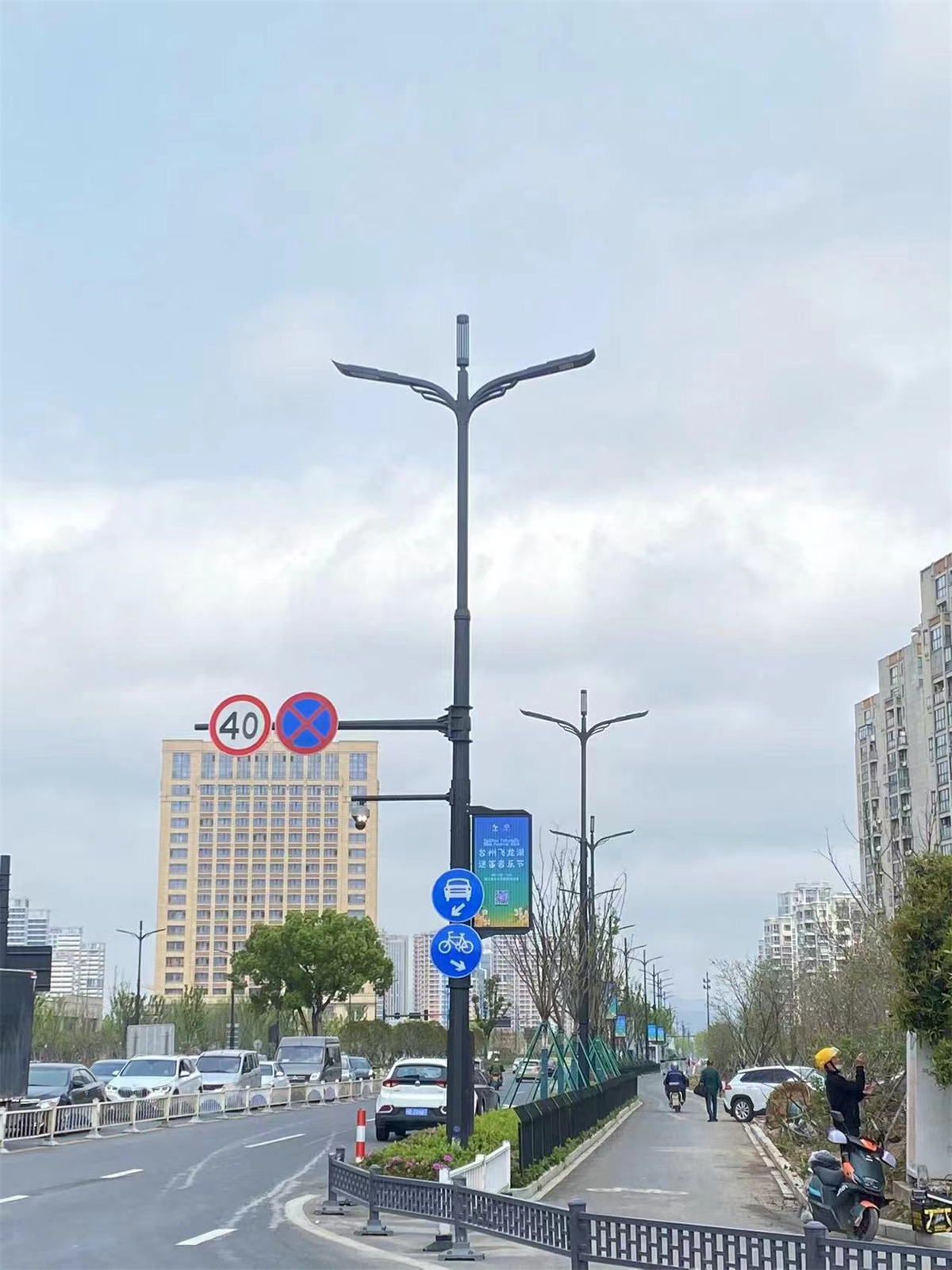 集交通、安防、照明于一體,搭載5G微基站、LED戶外屏、應急報警、智慧設備艙等, 實現多桿合一、多箱合一,通感一體化